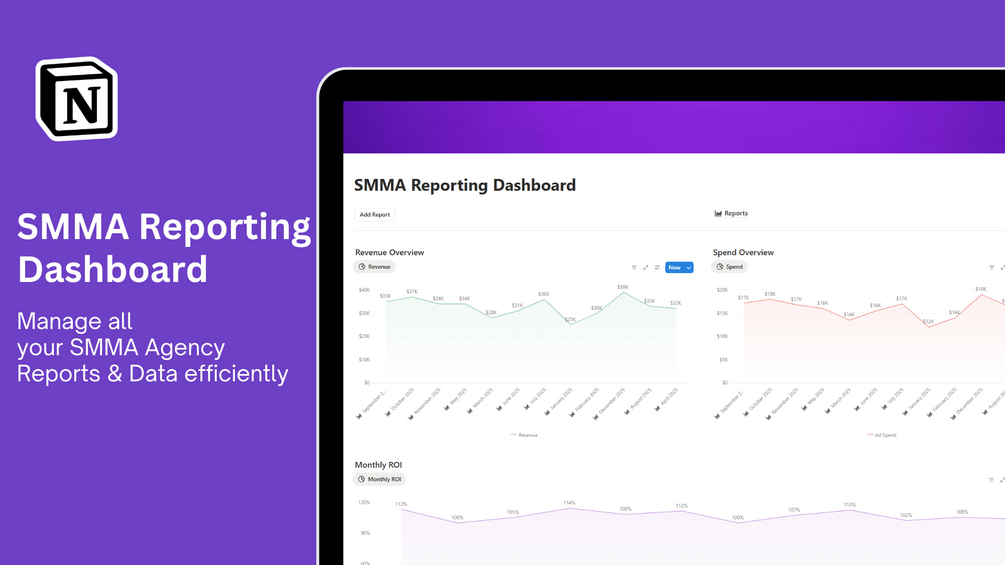 Turn complex numbers into clear, actionable insights. The SMMA Reporting Dashboard keeps your performance transparent, measurable, and easy to share — all inside Notion.