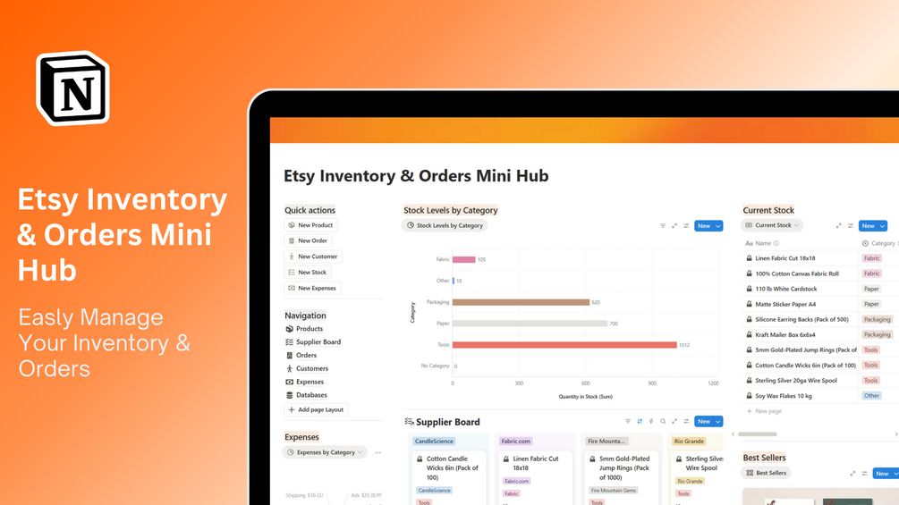 Etsy Inventory & Orders Mini Hub – Free Notion Template