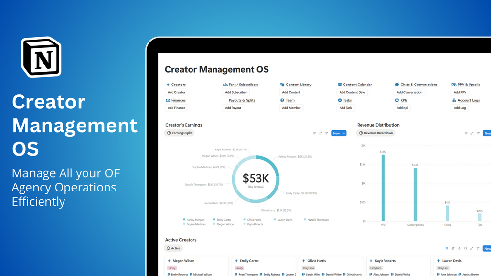 🔥 Creator Management OS helps OnlyFans agencies run operations with clarity, control, and consistency — all from one Notion workspace.