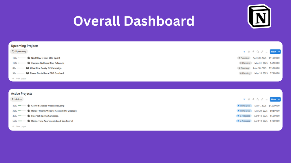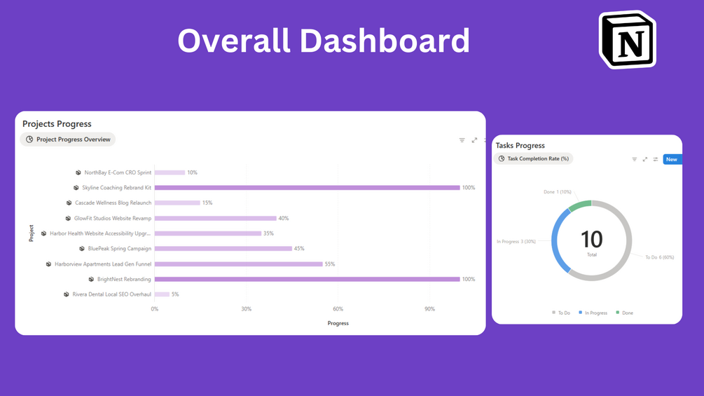 This clean, minimal, and functional Notion setup helps you take control of your agency’s operations — from concept to delivery — all in one place.
