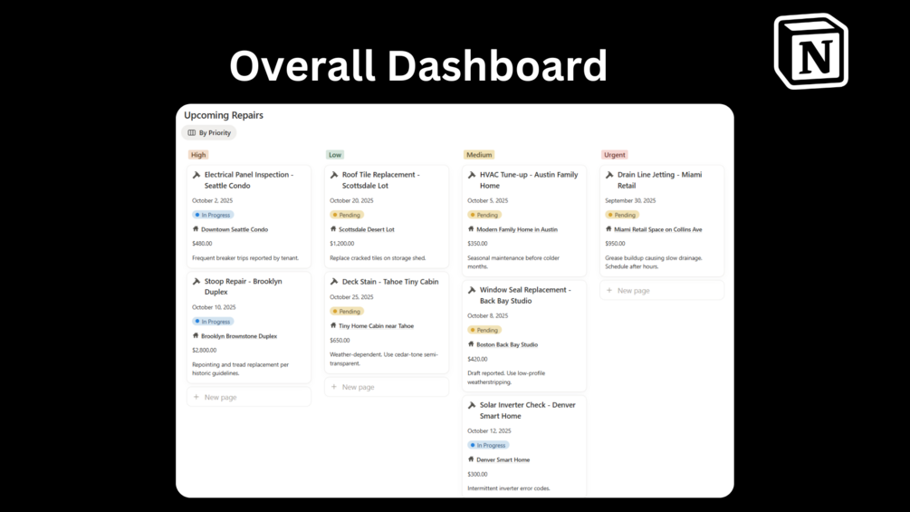- Invoices Database → Rent tracking, due dates, and payment status.