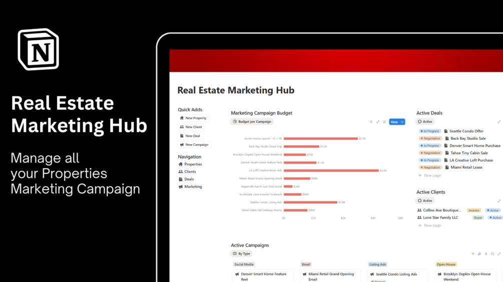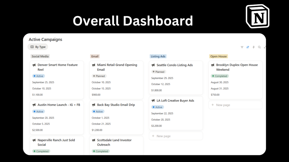 - Active Campaigns β See all ongoing marketing efforts in one board.