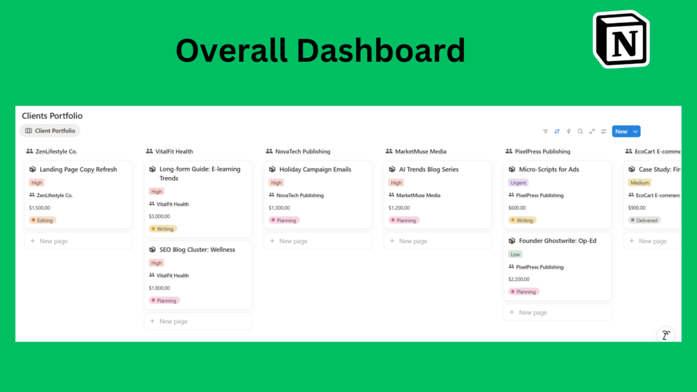 Because as a freelance copywriter, your clients are your business. Building long-term relationships and staying organized means more projects, smoother communication, and a stronger reputation. This free template helps you save time, stay on top of follow-ups, and manage clients like a pro — all inside Notion.
