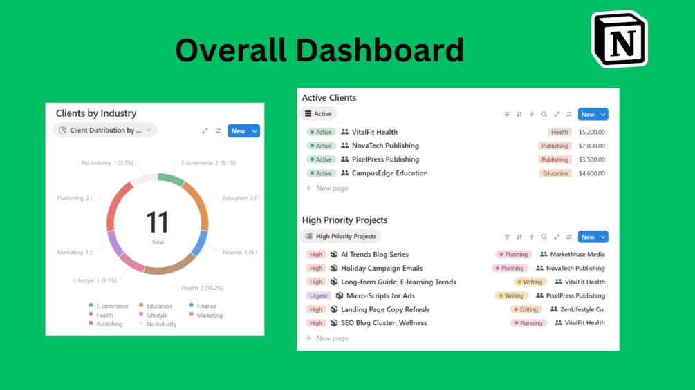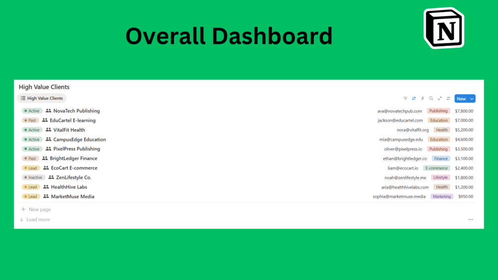 Because as a freelance copywriter, your clients are your business. Building long-term relationships and staying organized means more projects, smoother communication, and a stronger reputation. This free template helps you save time, stay on top of follow-ups, and manage clients like a pro — all inside Notion.