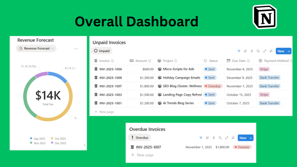 Managing finances as a copywriter can be overwhelming — invoices, payments, late clients, and revenue goals scattered across emails or spreadsheets. This minimalist system gives you a clear and simple view of your freelance income so you always know where your money is coming from.