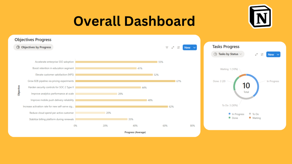 - Objectives by Progress % (Bar Chart) ā track advancement at a glance