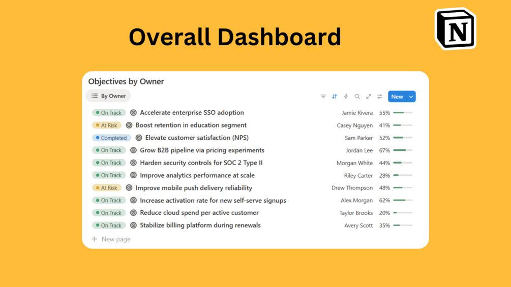 - Objectives by Progress % (Bar Chart) ā track advancement at a glance