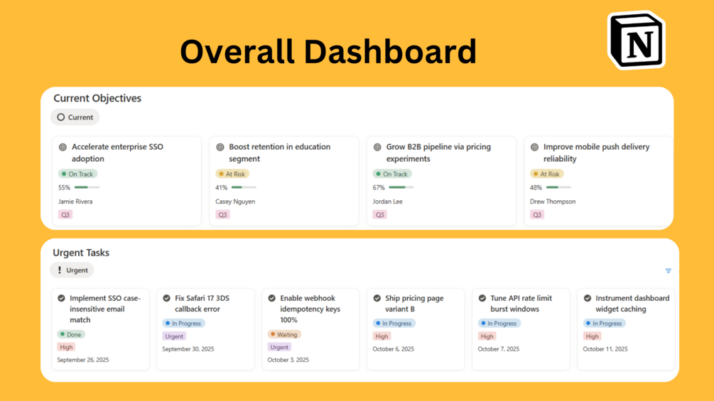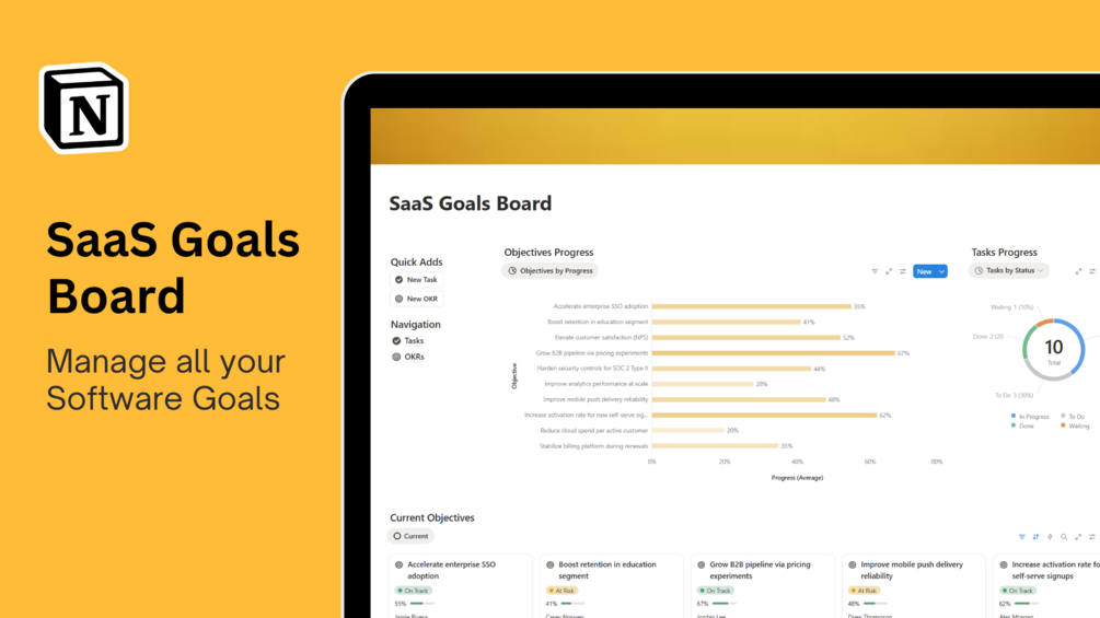 This template helps you structure your OKRs and link them with tasks so your team works with clarity and direction every quarter.