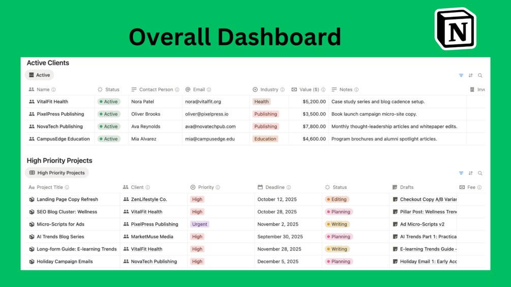 Take control of your freelance writing business with Copyrighter OS, the ultimate Notion workspace designed for copywriters, content creators, and freelance writers. π
