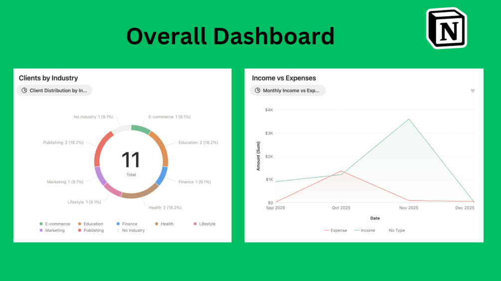 - Charts & Analytics β Track pipeline progress, revenue trends, high-value clients, and content performance.